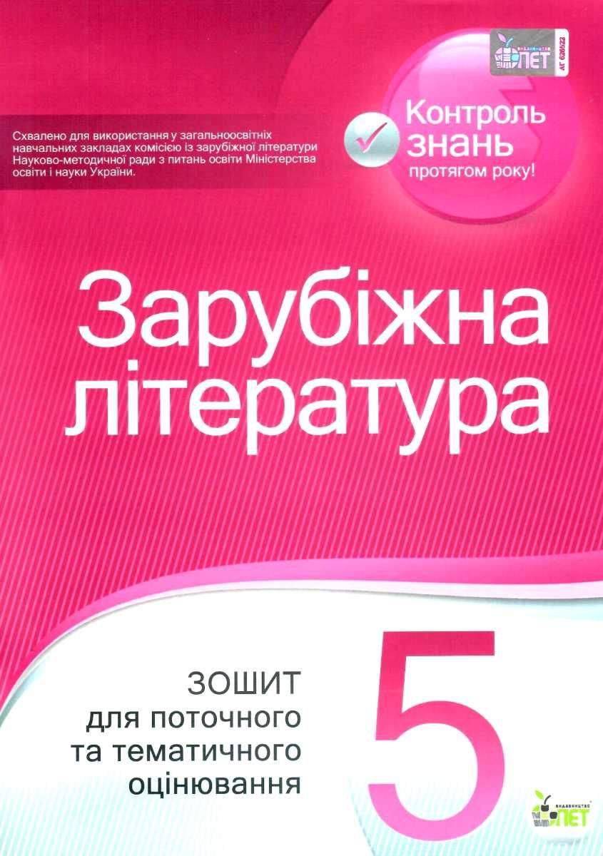 Зарубіжна література 5 клас Зошит для поточного та тематичного оцінювання Програма 2018 Авт: Карліна Л. Андронова Л. Вид: ПЕТ