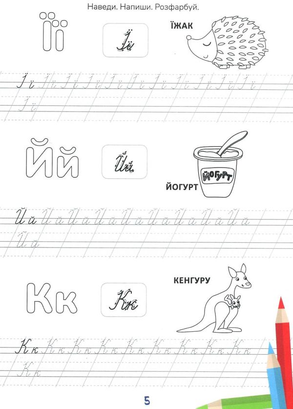 З цією книжкою навчання перетвориться на цікаву гру. Діти обожнюють малювати, отож залюбки розфарбують прості кумедні малюнки до української абетки. Разом з тим вивчать літери й потренуються писати їх у пропису. Цікавих завдань у книжці багато: мовні ігри, лабіринти, кросворди, ребуси… Завдання подарують дитині гарний настрій і корисні знання.