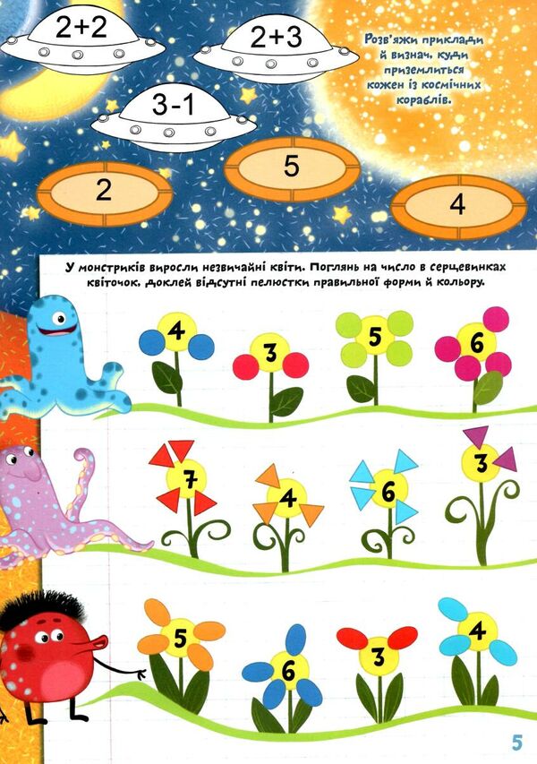 Математика має бути цікавою! Відкривай світ цифр разом із нами! Навчаємося, рахуємо та граємо. У книзі понад 165 наліпок.