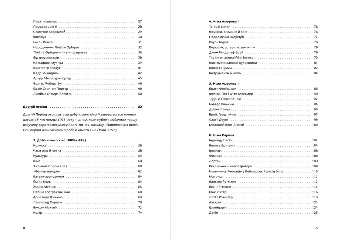 У Книзі першій ідеться про витоки сучасної анімації, про те, що їй передувало, про історію появи фільму «Фантасмагорія» Еміля Коля та про два десятиліття німих мультфільмів. Спершу висвітлено роки становлення анімації, а тоді – так звану Золоту добу, що тривала до середини минулого століття. Згадано не лише відомі шедеври на кшталт «Пароплавчика Віллі», а й малознані анімаційні витвори з Єгипту чи Німеччини часів Третього Райху. Величезний обсяг нового матеріалу, набутого в авторських дослідженнях, сотні світлин і кадрів, просте й логічне впорядкування інформації роблять цю книгу обов’язковим читанням для будь-кого, хто прагне докладного знайомства з історією анімації.