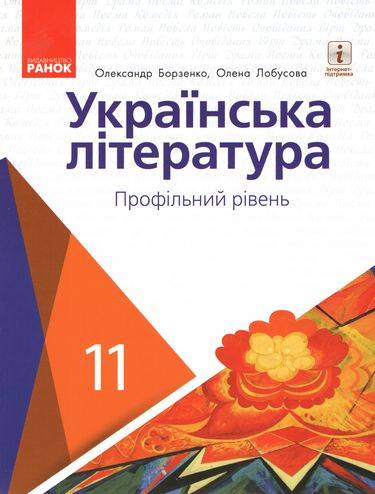 Підручник Українська література Профільний рівень 11 клас Програма 2019 Авт: Борзенко О. Вид: Ранок