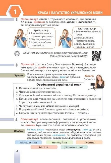 Зміст підручника відповідає Державному стандарту загальної середньої освіти та Модельній навчальній програмі «Українська мова. 5–6 класи» для закладів загальної середньої освіти (автори: Голуб Н.Б., Горошкіна О.М.). Для учнів та учениць 6 класу.