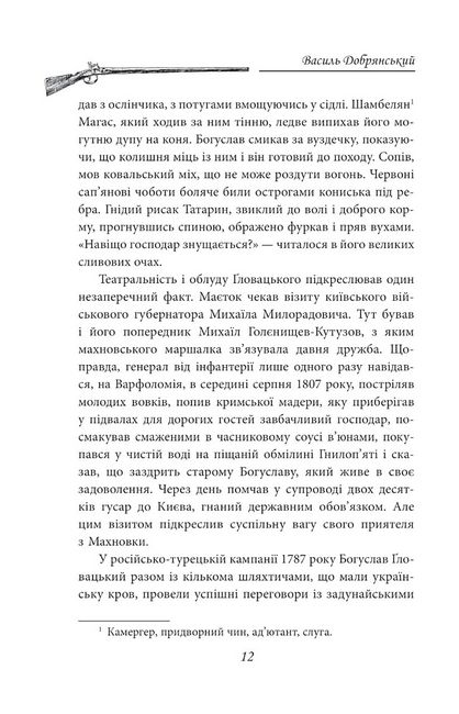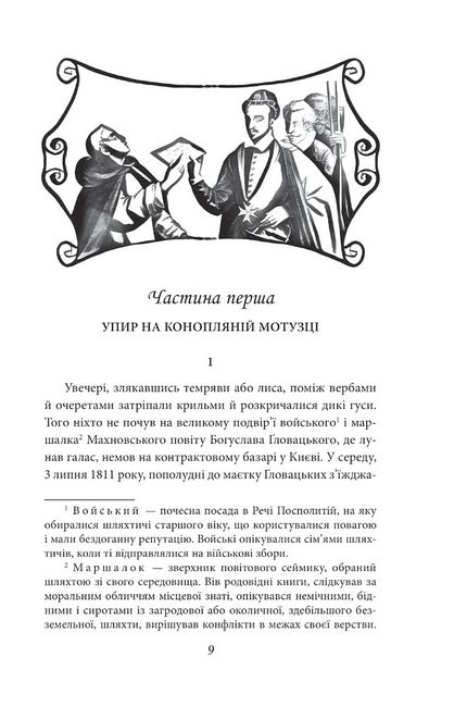 1811 рік. Переддень Наполеонівської навали. Над світом рухається Велика комета – грізна Жовта Відьма, пророчиця біди… Вельмишановне панство – номінально вже російське, за духом – хто який: хто польський, хто український. Садиба Богуслава Ґловацького край Бердичева, шляхта збирається на відкриття охоти – та раптом знайдено вбитого офіцера… А потім, як і очікувалось: розшук, пригоди, Чорний Вершник, підземна в'язниця, отрута, самодурство шляхтичів, продане життя, пістолі та шаблі, бойова дружба та вірність. Злочин розкрито, але… Свавілля влади… Ревіння пожежі… Неминуча загибель, несподіваний порятунок, підземні ходи… Пригоди, гідні Олександра Дюма-батька, і одна з досі невідомих сторінок історії.