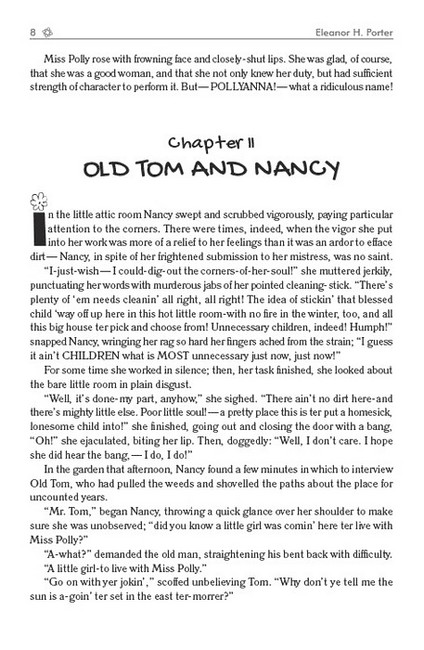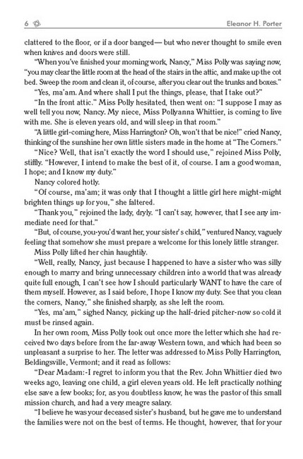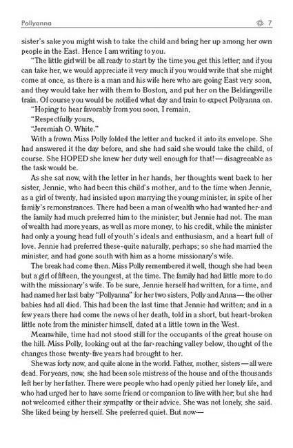 The novel “Pollyanna” by cult American writer Eleanor H. Porter (1868—1920) has long ago won the worldwide fame and gained the readers’ love. The book was filmed more than once, and after it had been published, in psychology there even appeared the terms “Pollyanna principle” and “Pollyannaism”. The reasons of such tremendous success were love of life and optimism irradiated by the main heroine of the novel. Little Pollyanna taught the whole township to look for positive where it would seem impossible to find it. She calls it the “glad game”, and each reader, having opened the book, becomes a participant in this marvelous game.