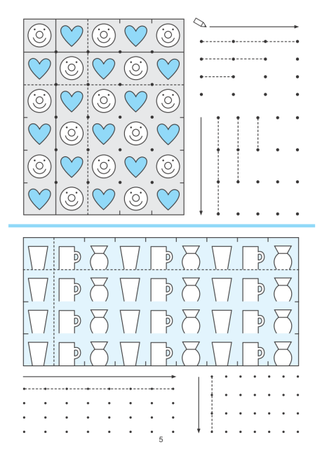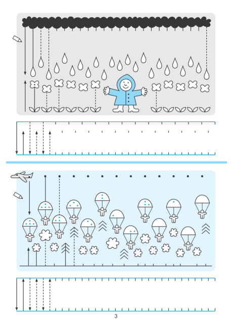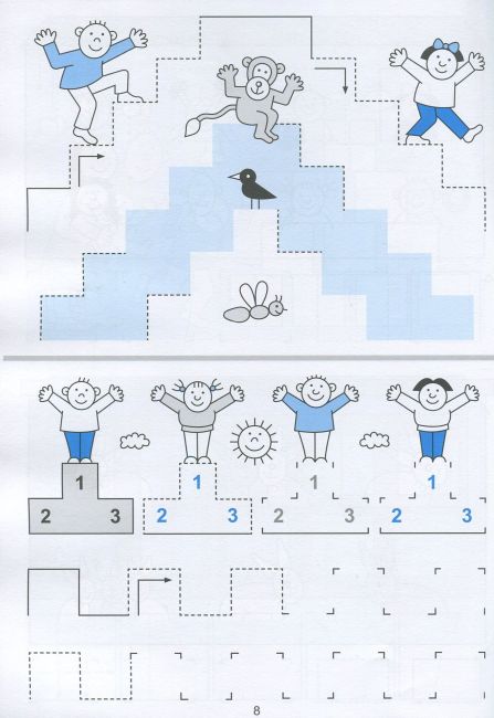 В інших завданнях лінія з крапкою можуть утворювати рисунок, який вона має закінчити або повторити. Багато рисунків у зошиті не завершені, щоб дитина пофантазувала і домалювала їх.