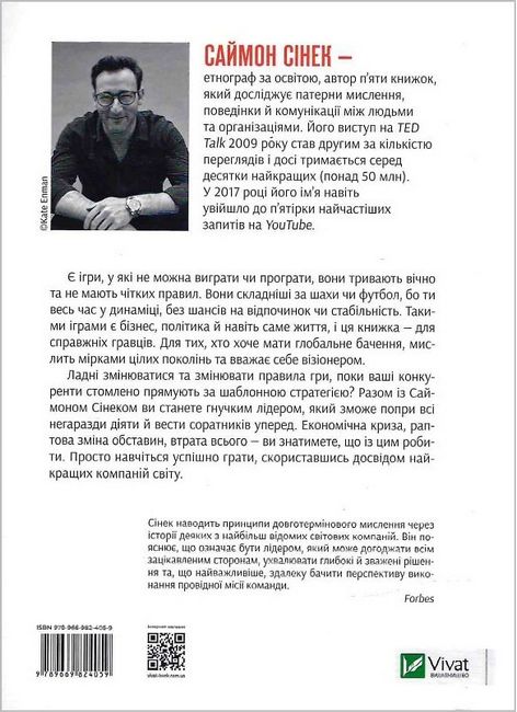 Ладні змінюватися та змінювати правила гри, поки ваші конкуренти стомлено прямують за шаблонною стратегією? Разом із Саймоном Сінеком ви станете гнучким лідером, який зможе попри всі негаразди діяти й вести соратників уперед. Економічна криза, раптова зміна обставин, втрата всього — ви знатимете, що із цим робити. Просто навчіться успішно грати, скориставшись досвідом найкращих компаній світу.