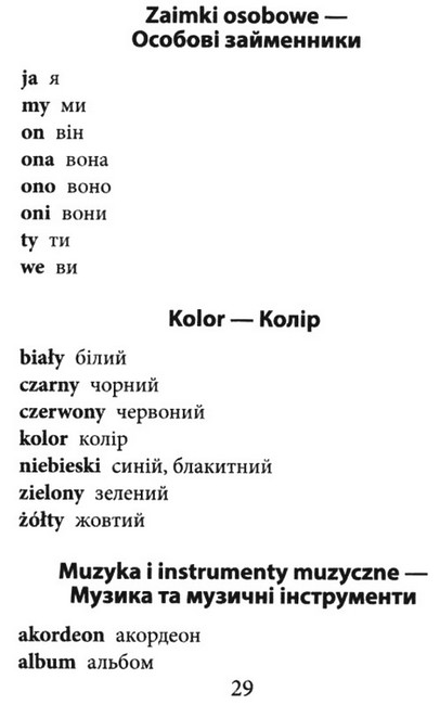 Книга містить понад 2000 найбільш корисних і часто вживаних слів і фраз, які допоможуть вдало та правильно сформулювати речення польською мовою.