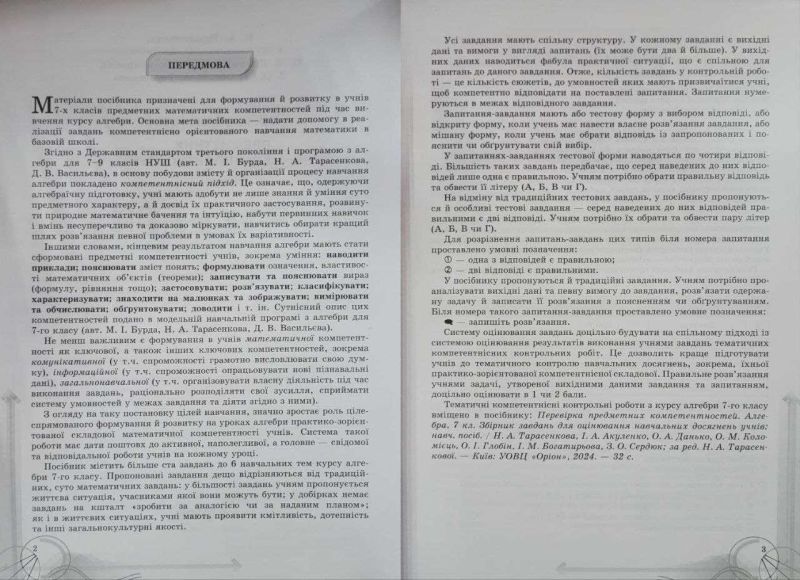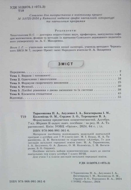 Формування предметних компетентностей Алгебра 7 клас НУШ Авт: Тарасенкова Н.А. та ін. Вид-во: Оріон 104163