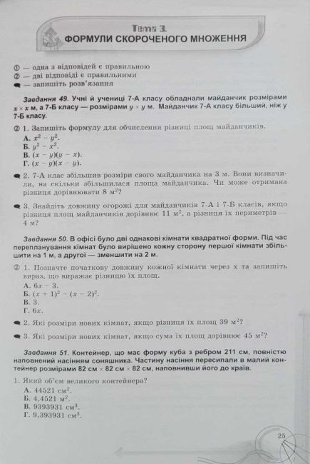 Посібник містить набори компетентнісних задач до шести навчальних тем курсу алгебри 7 класу НУШ.