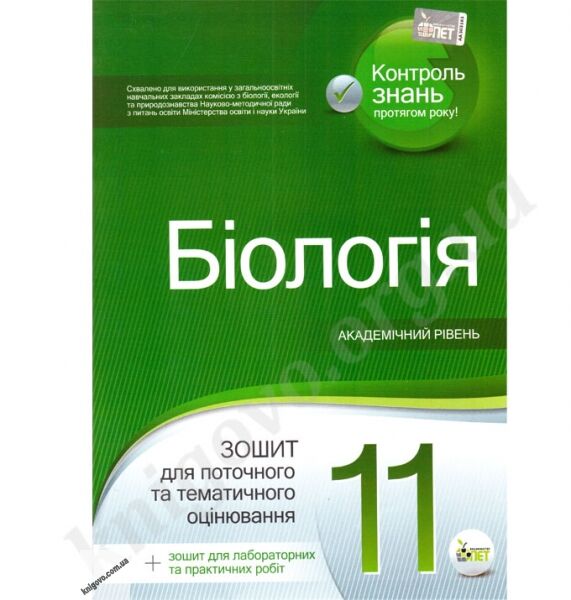 Біологія 11 клас. Академічний рівень. Зошит для поточного та тематичного оцінювання + вкладка Зошит для лабораторних та практичних робіт. Орлюк С.М. Вид-во: ПЕТ 9788