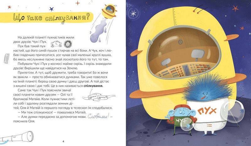 Мовні явища – абстрактні, тож дорослим буває непросто пояснити малечі, у чому відмінність між звуком і літерою, що таке значення слова, як відрізнити головні члени речення від другорядних чи навіщо нам відмінки. Завдяки цій книжечці, написаній у формі коротких пригодницьких історій про кумедних друзів-інопланетян, батьки зуміють дохідливо розтлумачити дітям складні мовні поняття, а вчителі зможуть образно й цікаво пояснити учням програмні теми.