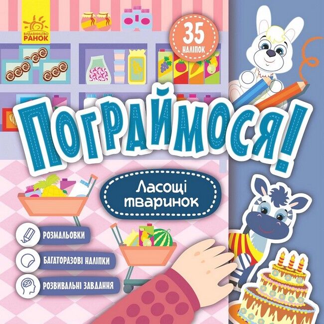 У кожній книзі 35 багаторазових наліпок, цікаві логічні завдання, розмальовки. Граючись, дитина зможе познайомитися із тваринами, створити власні сюжети за допомогою наліпок, розповісти історії за малюнками. Малюк спостерігає, порівнює, розмірковує, тренує пам'ять і цікаво проводить час.
