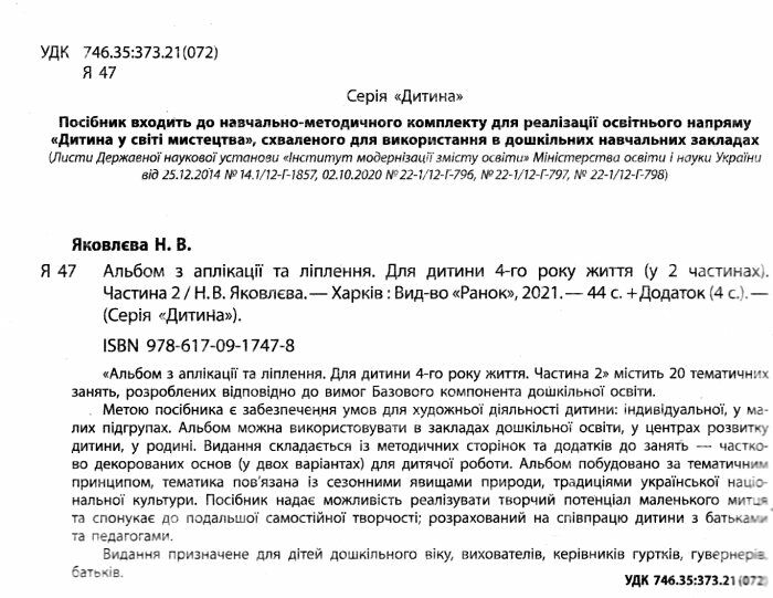 Альбом з аплікації та ліплення Для дитини 4-го року життя Частина 2 Зима Літо Яковлєва серія Дитина Ранок 19545