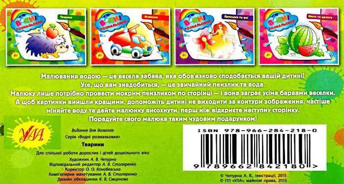 Водні розмальовки Тварини Авт: Таровита І. Вид: УЛА