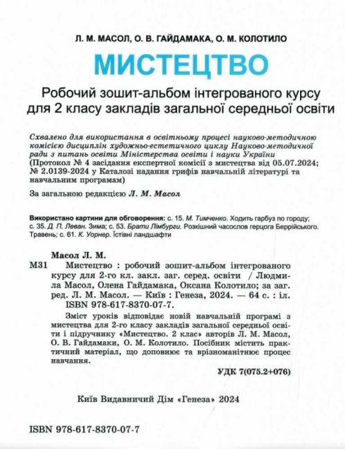 Робочий зошит-альбом інтегрованого курсу Мистецтво 2 клас НУШ Авт: Масол Л. Гайдамака О. Колотило О. Вид-во: Генеза 102087