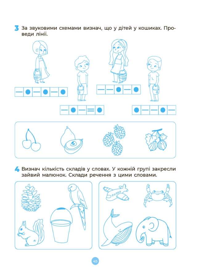 Ми розробили зошити на допомогу майбутньому першокласникові, спрямовані на вивчення основ грамоти, фонетичного сприйняття, звукового аналізу елементів мови тощо.