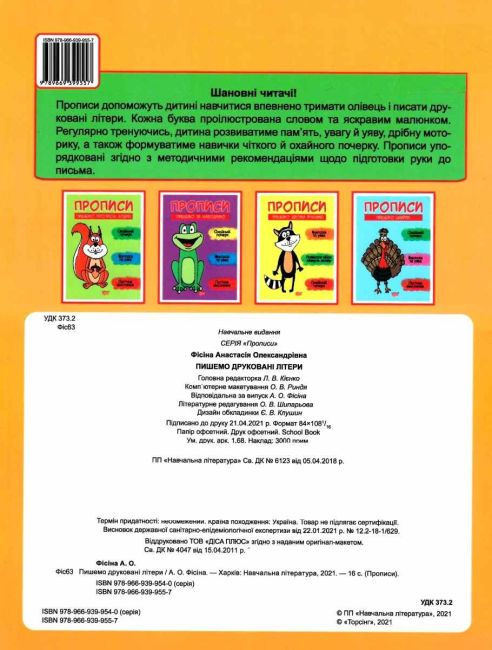 ПРОПИСИ ПИШЕМО ДРУКОВАНІ ЛІТЕРИ ФІСІНА А. ТОРСІНГ