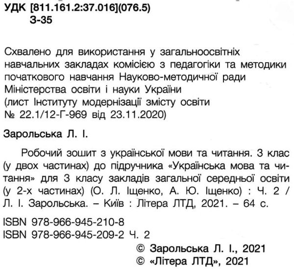 Робочий зошит з української мови та читання 3 клас Частина 2 НУШ До підручника Іщенко О.Л. Авт: Зарольська Л.І. Вид-во: Літера 42712