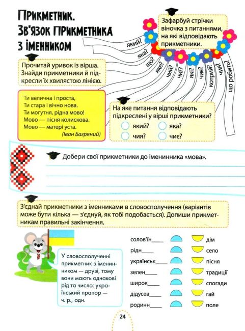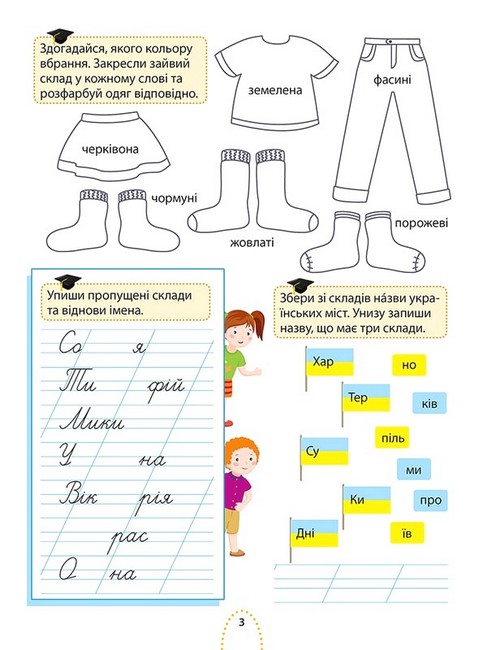 Посібник охоплює всі необхідні теми та методичні рекомендації, згідно з програмою НУШ. Вправи спрямовані на відпрацювання та закріплення набутих під час навчання навичок. У зошитах цієї серії застосований ігровий підхід до навчання: школярик буде одночасно відпрацьовувати теми зі шкільної програми та малювати, шукати вихід з лабіринту, розгадувати логічні загадки та шифрувальники.