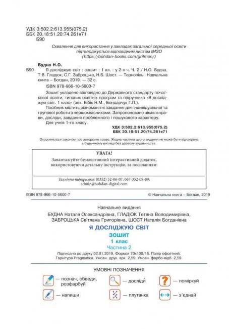 Зошит Я досліджую світ 1 клас Частина 2 НУШ До підручника Бібік Н.М. Бондарчук Г.П. Авт: Будна Н.О. та ін. Вид-во: Богдан 78828