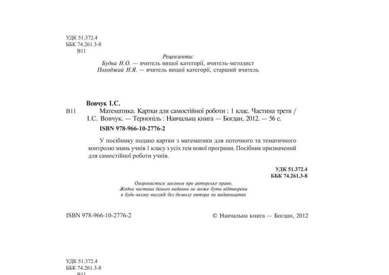 Картки для самостійної роботи Математика 1 клас Частина 3 НУШ Авт: Вовчук І.С. Вид-во: Богдан 78819