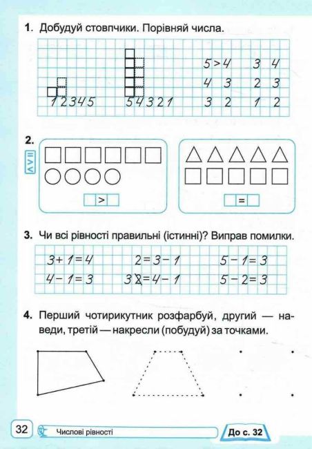 Зошит призначений для уроків математики в 1 класі. Він відповідає системі вправпідручника А. Заїки, С. Тарнавської «Математика. 1 клас». Зошит містить виважену систему вправ і завдань для формування математичних і загальноосвітніх компетентностей.