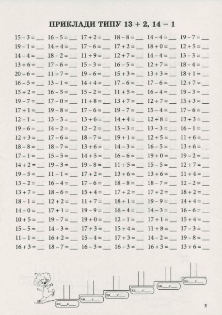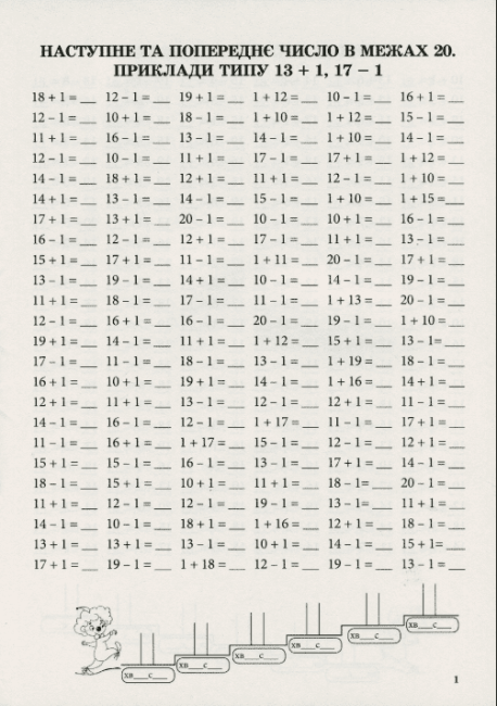 Тренажер з математики Додавання та віднімання в межах 20 НУШ. Завдання в зошиті дозволять дитині робити обчислення у швидкому темпі. Користуючись сходинками та лінійками оцінювання, учень зможе самостійно оцінювати свою роботу.