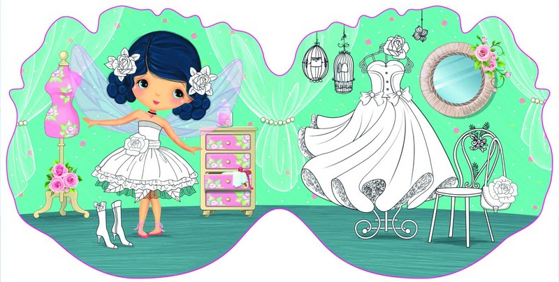 Запрошую тебе в чарiвний свiт, де я i мої подружки мешкаємо в маленьких будиночках-квiточках. Розфарбуй їх та прикрась за допомогою барвистих налiпок. Не забудь i про нас: добери яскравi кольори для нашого вбрання.