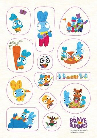 Стікерпаки з героями мультсеріалу «Хоробрі Зайці» складаються з 2 аркушів наліпок формату А5 у пакеті. Наліпками можна прикрасити ноутбук, смартфон, планшет, все на що вистачить фантазії. Кожен стікер на аркуші вирізаний по контуру, його легко відокремити від аркуша.