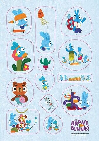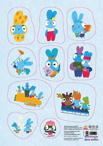 Стікерпаки з героями мультсеріалу «Хоробрі Зайці» складаються з 2 аркушів наліпок формату А5 у пакеті. Наліпками можна прикрасити ноутбук, смартфон, планшет, все на що вистачить фантазії. Кожен стікер на аркуші вирізаний по контуру, його легко відокремити від аркуша.