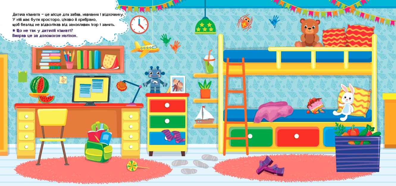 Наліпки-помічниці Велике прибирання УЛА. Захопливі завдання допоможуть розвинути увагу, логічне мислення, уяву та мовлення, а оригінальне оформлення у вигляді смішної плутанини неодмінно зацікавить дитину.
