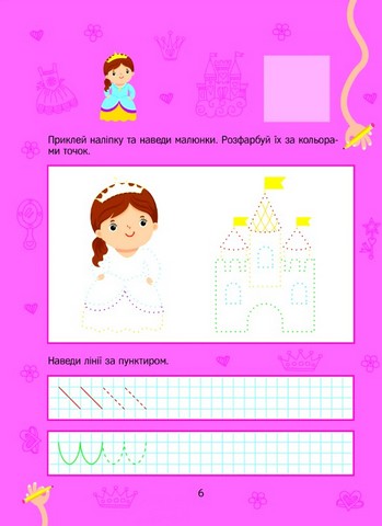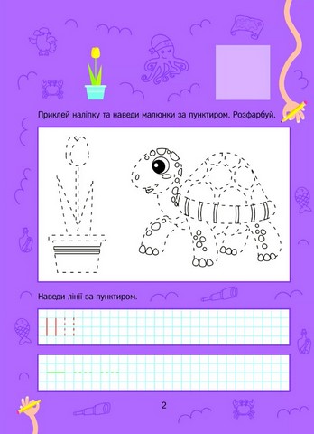 Із цією книжкою маленькі розумахи креслитимуть прості лінії, проходитимуть лабіринти й навчаться орієнтуватися у просторі. Цікаві завдання та яскраві малюнки допоможуть малечі розвинути уяву та асоціативну пам’ять, а разом із наліпками дітлахи потренують дрібну моторику. Веселих занять!